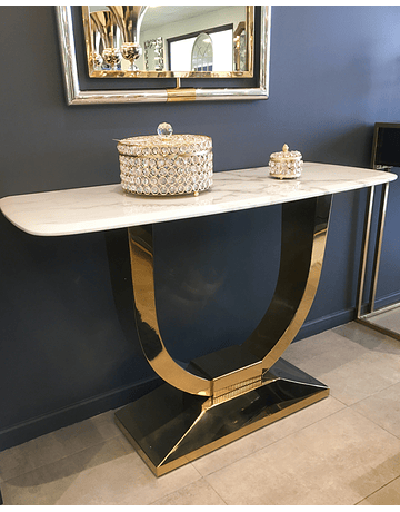 Arrimo Fantasy. Base Acero Inoxidable Dorado y Cubierta Mármol Blanco.