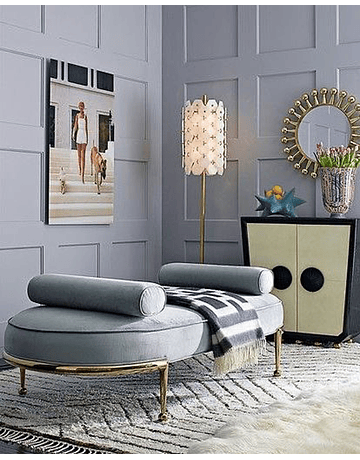 Banqueta Dalí. Base acero inoxidable dorado espejo y Tapiz Velvet