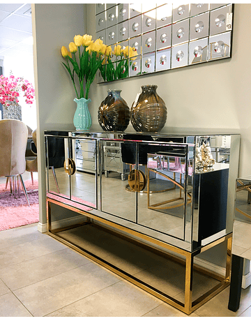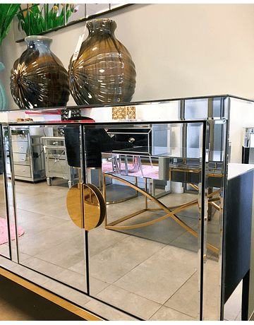 Buffet Modelo Osaka, fondo base, manillas doradas y repisas interiores