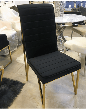 Silla Georgette Velvet Negro. Base Acero Inoxidable Dorado Espejo